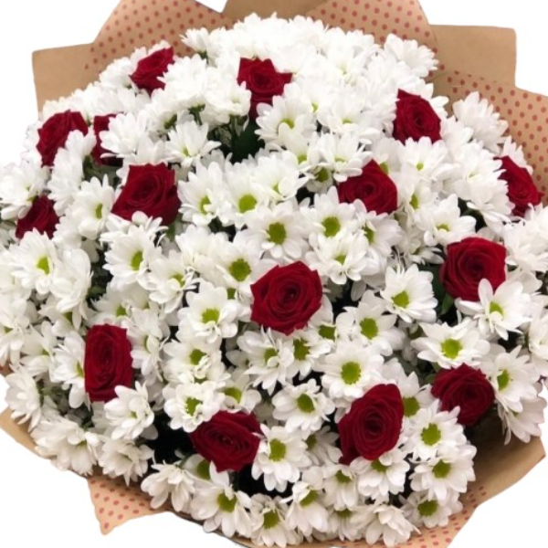 Ürün Kodu: ABF1315 Adet Kırmızı Gül ve 25 Dal Papatyalar Şık Buket