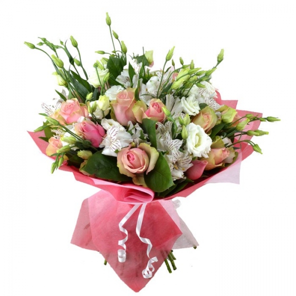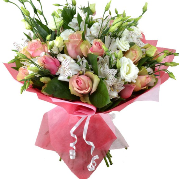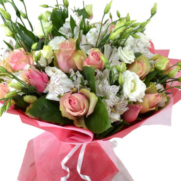 Ürün Kodu: ABF1613 adet Pembe Gül 5 Dal Astomerya 7 Dal Beyaz Lisyantus İle Hazırlanmıştır.